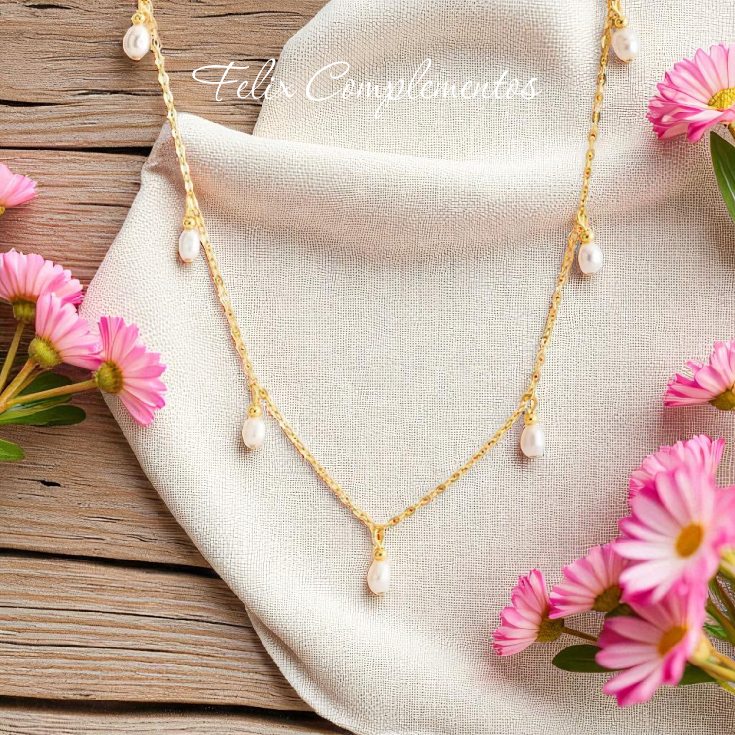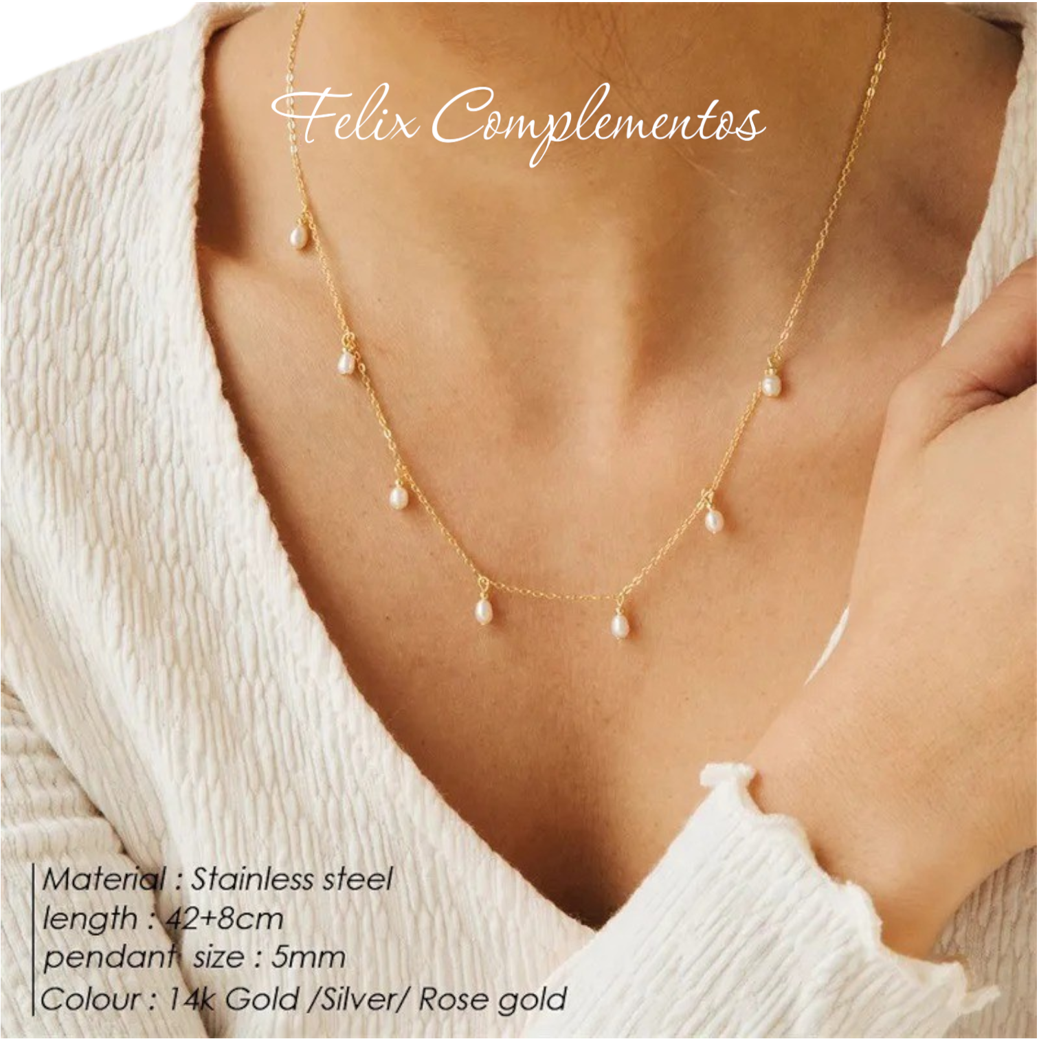 Pearl necklace Steel with a 14k gold bath.
