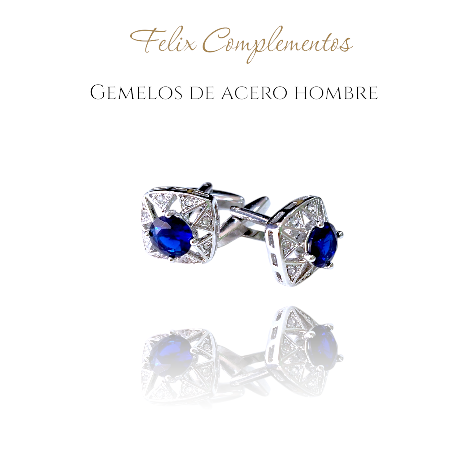 These men's cufflinks are bold and elegant, featuring a blue crystal diamond inlay that makes them unique and attractive. Enhance your style with these elegant cufflinks and be the center of attention at any event.