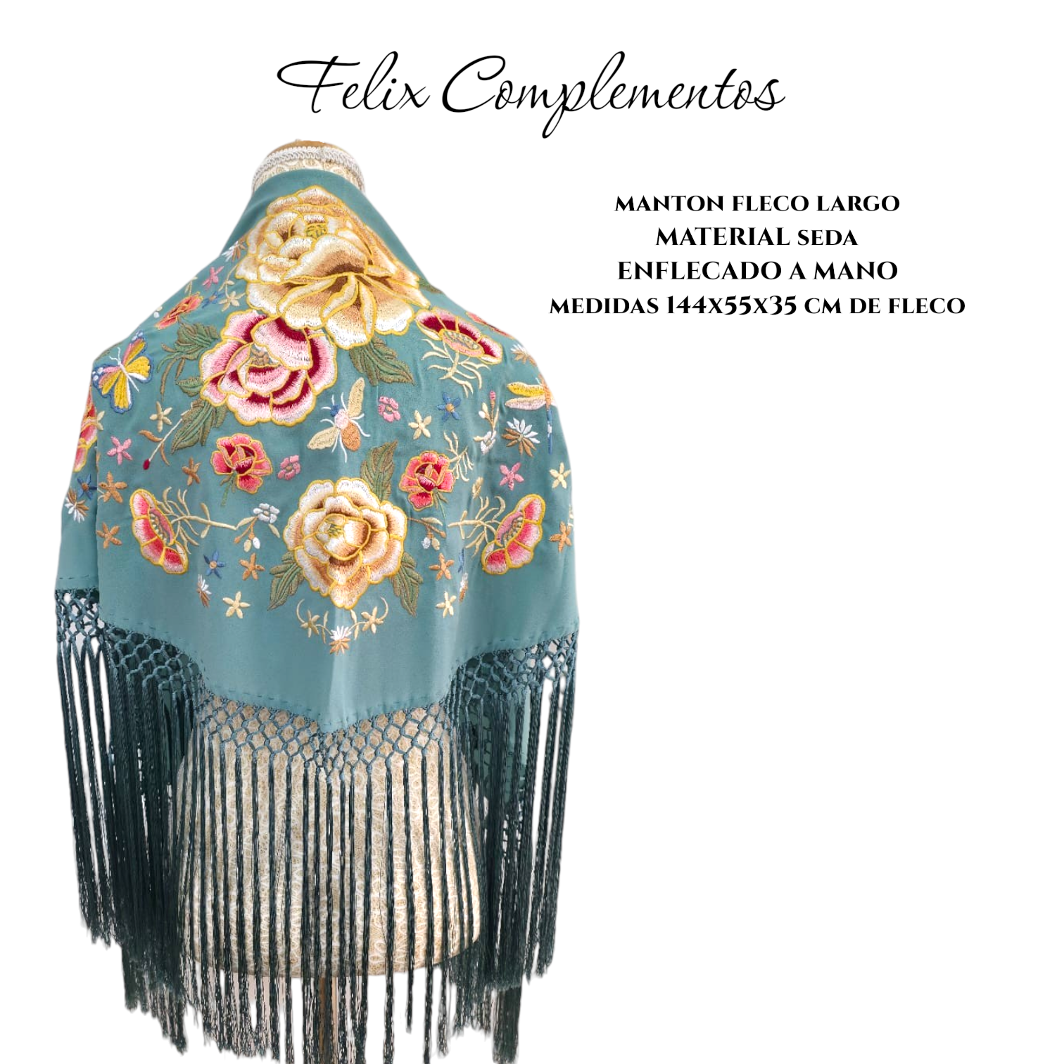Soapy green background shawl with flowers (Sunrise Model)