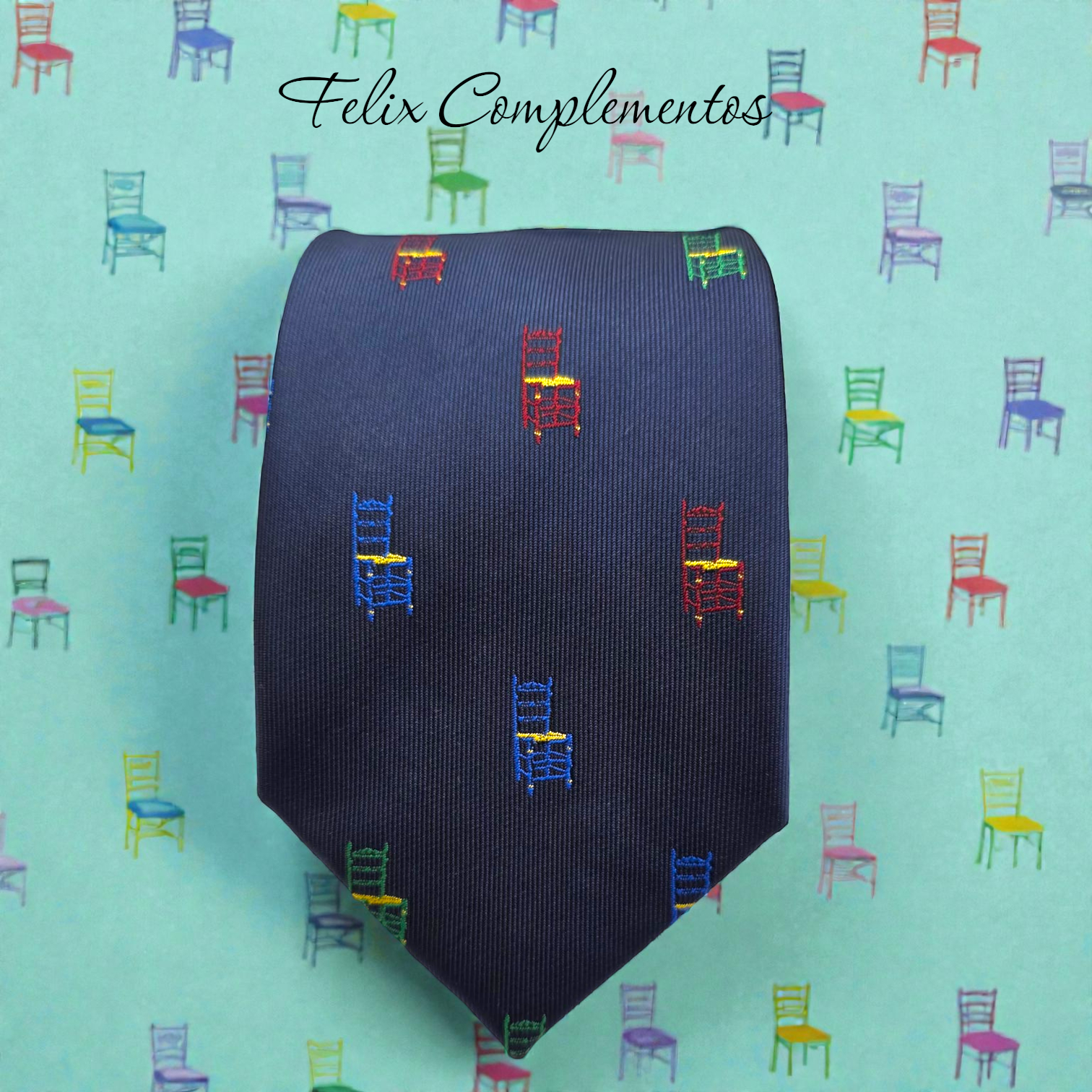 ¡La esencia del Real en tu cuello! Si buscas una corbata que derroche alegría y buen humor, este diseño es el ganador. Olvida los dibujos aburridos y lánzate a lucir el símbolo más auténtico de nuestra fiesta: las clásicas sillas de anea.