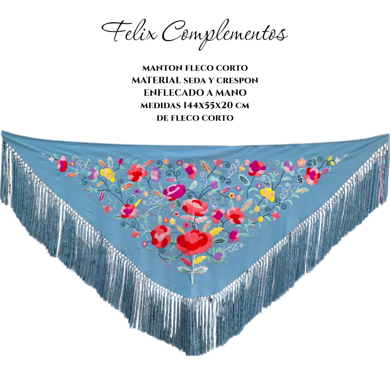 El Mantón de crespón y fleco de seda es una pieza elegante y tradicional mezclado con la modernidad de hoy en día, confeccionada con hilo de seda, lo que le otorga un brillo y una caída inigualables. El crespón añade textura y cuerpo al tejido, mientras que el enflecado a mano realza su valor artesanal, garantizando la calidad de los flecos y el anudado.