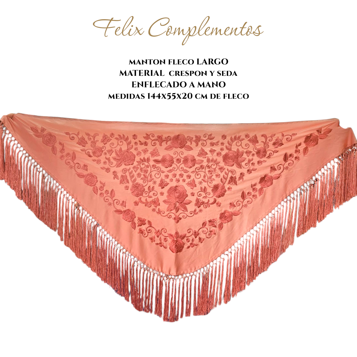 El Mantón de crespón y fleco de seda es una pieza elegante y tradicional mezclado con la modernidad de hoy en día, confeccionada con hilo de seda, lo que le otorga un brillo y una caída inigualables. El crespón añade textura y cuerpo al tejido, mientras que el enflecado a mano realza su valor artesanal, garantizando la calidad de los flecos y el anudado.