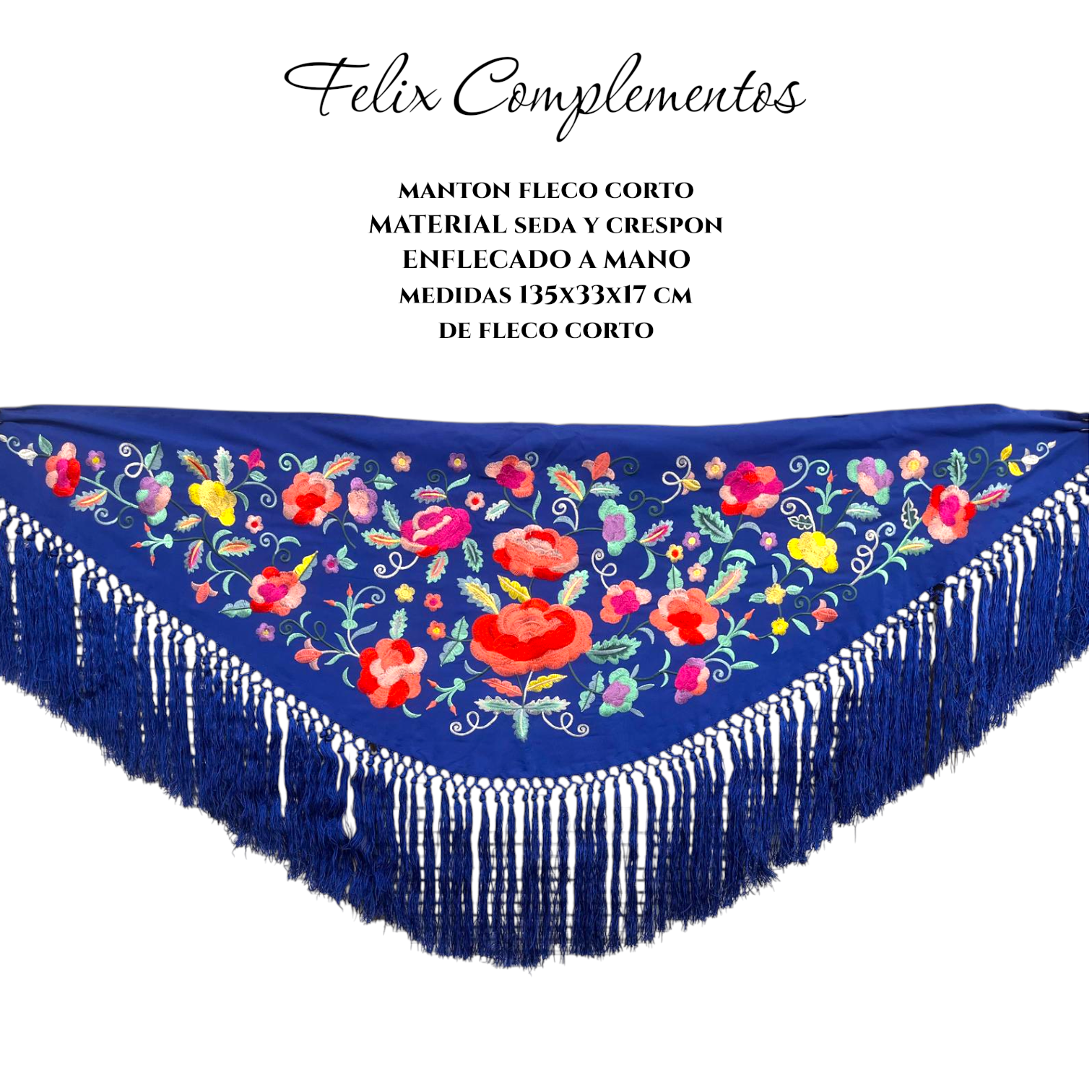 El Mantón de crespón y fleco de seda es una pieza elegante y tradicional mezclado con la modernidad de hoy en día, confeccionada con hilo de seda, lo que le otorga un brillo y una caída inigualables. El crespón añade textura y cuerpo al tejido, mientras que el enflecado a mano realza su valor artesanal, garantizando la calidad de los flecos y el anudado.