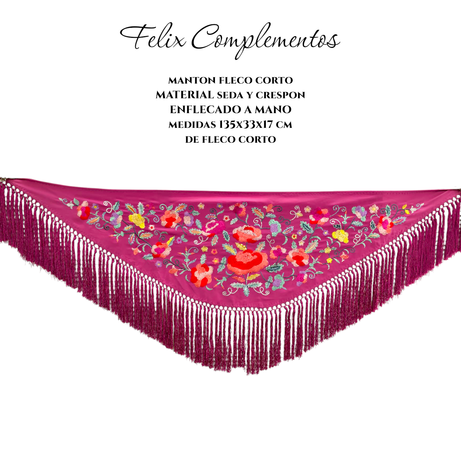 El Mantón de crespón y fleco de seda es una pieza elegante y tradicional mezclado con la modernidad de hoy en día, confeccionada con hilo de seda, lo que le otorga un brillo y una caída inigualables. El crespón añade textura y cuerpo al tejido, mientras que el enflecado a mano realza su valor artesanal, garantizando la calidad de los flecos y el anudado.