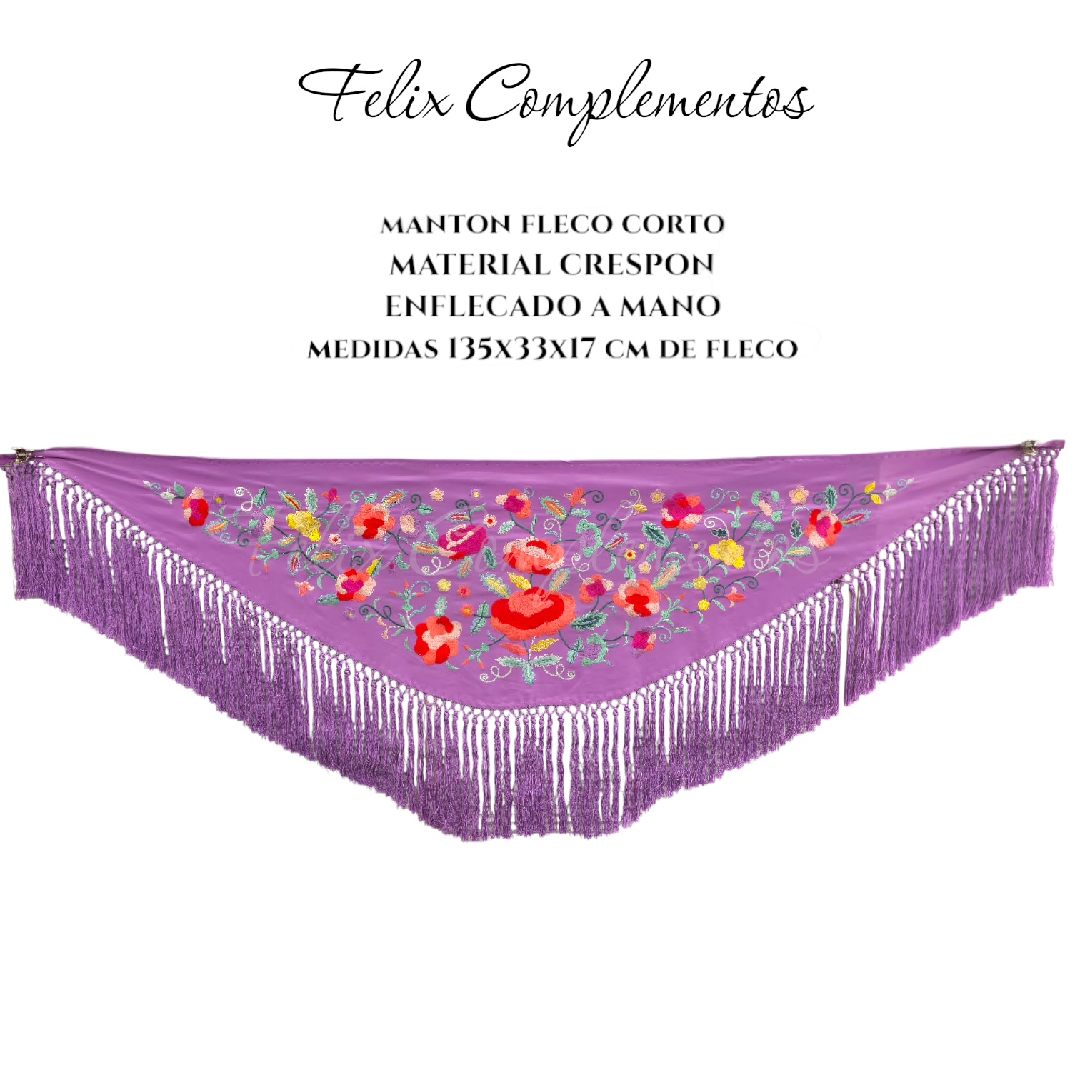 El Mantón de crespón y fleco de seda es una pieza elegante y tradicional mezclado con la modernidad de hoy en día, confeccionada con hilo de seda, lo que le otorga un brillo y una caída inigualables. El crespón añade textura y cuerpo al tejido, mientras que el enflecado a mano realza su valor artesanal, garantizando la calidad de los flecos y el anudado.