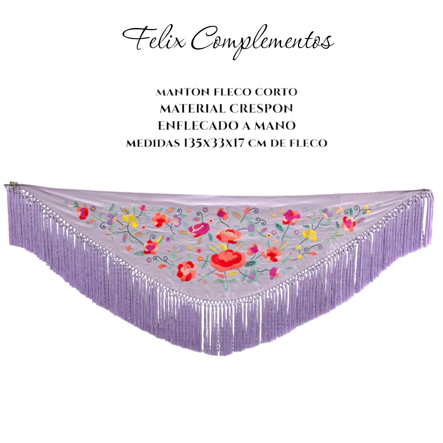 El Mantón de crespón y fleco de seda es una pieza elegante y tradicional mezclado con la modernidad de hoy en día, confeccionada con hilo de seda, lo que le otorga un brillo y una caída inigualables. El crespón añade textura y cuerpo al tejido, mientras que el enflecado a mano realza su valor artesanal, garantizando la calidad de los flecos y el anudado.