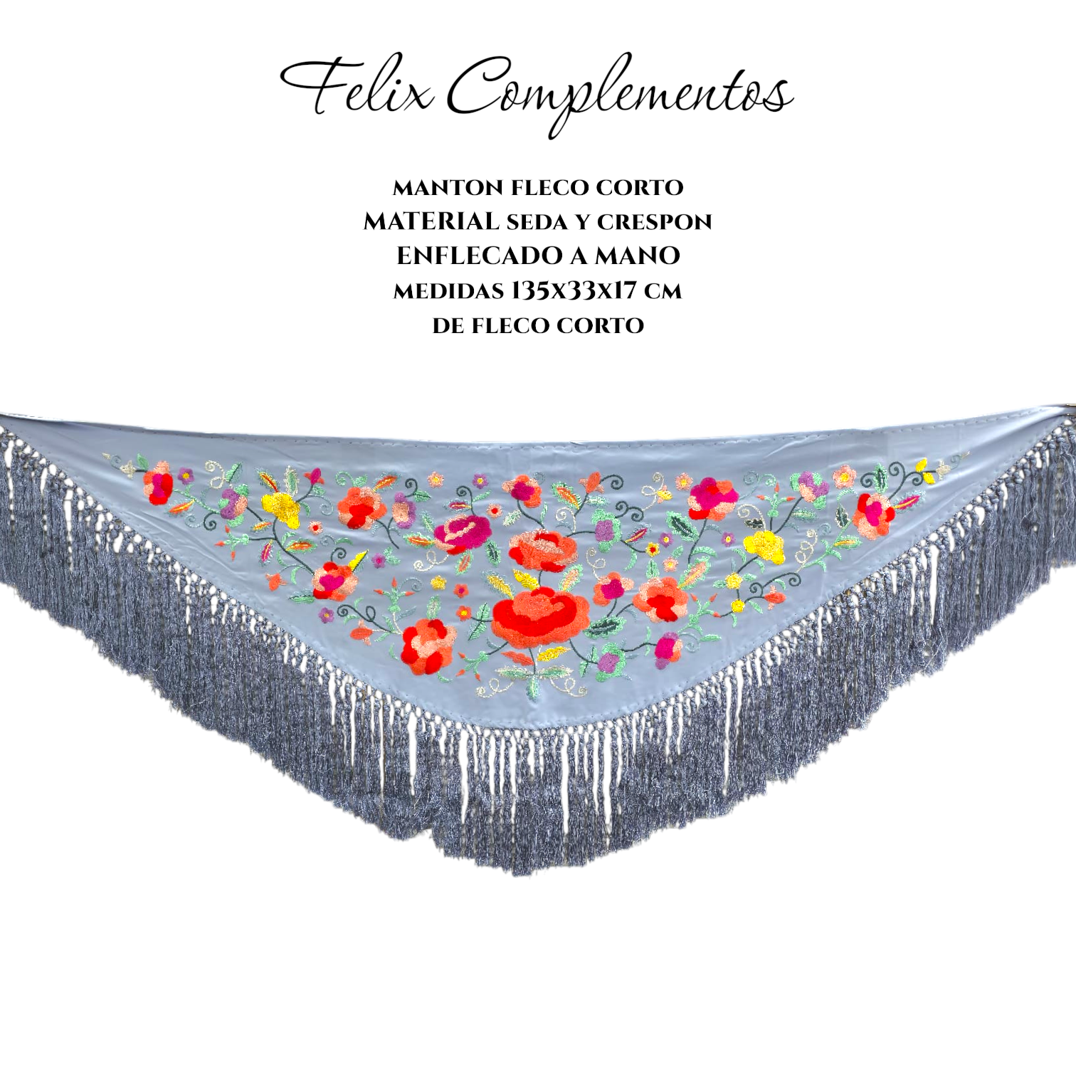 El Mantón de crespón y fleco de seda es una pieza elegante y tradicional mezclado con la modernidad de hoy en día, confeccionada con hilo de seda, lo que le otorga un brillo y una caída inigualables. El crespón añade textura y cuerpo al tejido, mientras que el enflecado a mano realza su valor artesanal, garantizando la calidad de los flecos y el anudado.