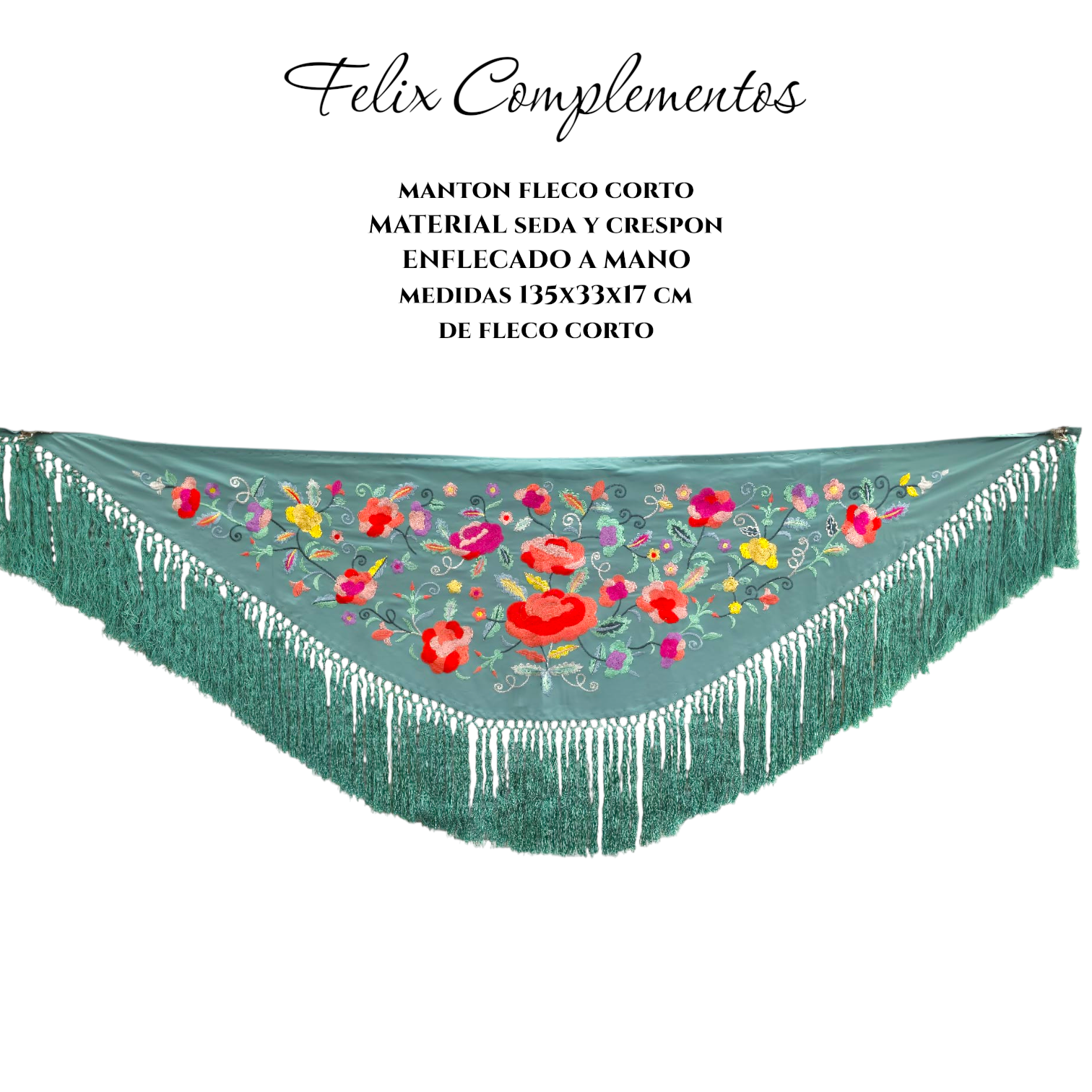 El Mantón de crespón y fleco de seda es una pieza elegante y tradicional mezclado con la modernidad de hoy en día, confeccionada con hilo de seda, lo que le otorga un brillo y una caída inigualables. El crespón añade textura y cuerpo al tejido, mientras que el enflecado a mano realza su valor artesanal, garantizando la calidad de los flecos y el anudado.