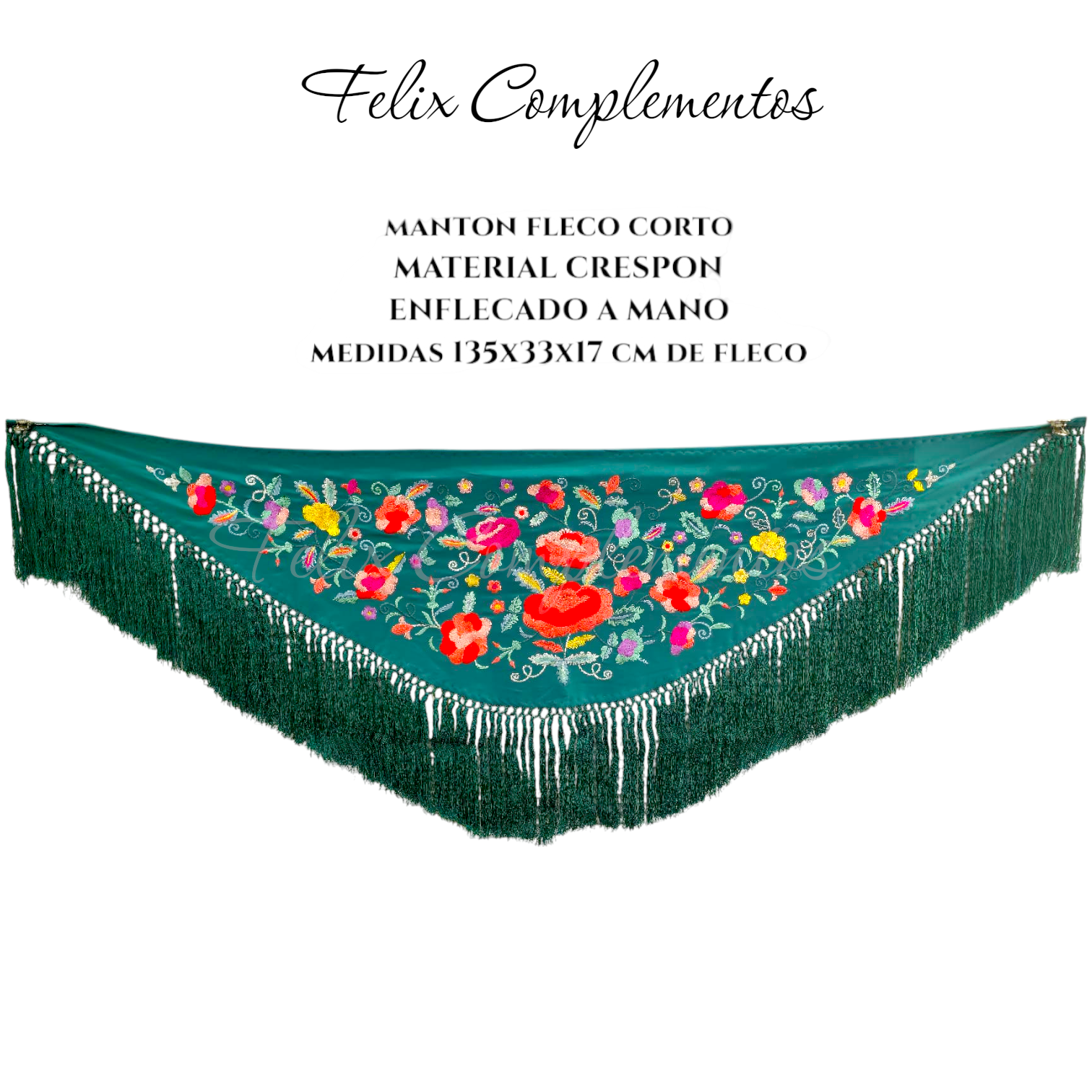 El Mantón de crespón y fleco de seda es una pieza elegante y tradicional mezclado con la modernidad de hoy en día, confeccionada con hilo de seda, lo que le otorga un brillo y una caída inigualables. El crespón añade textura y cuerpo al tejido, mientras que el enflecado a mano realza su valor artesanal, garantizando la calidad de los flecos y el anudado.
