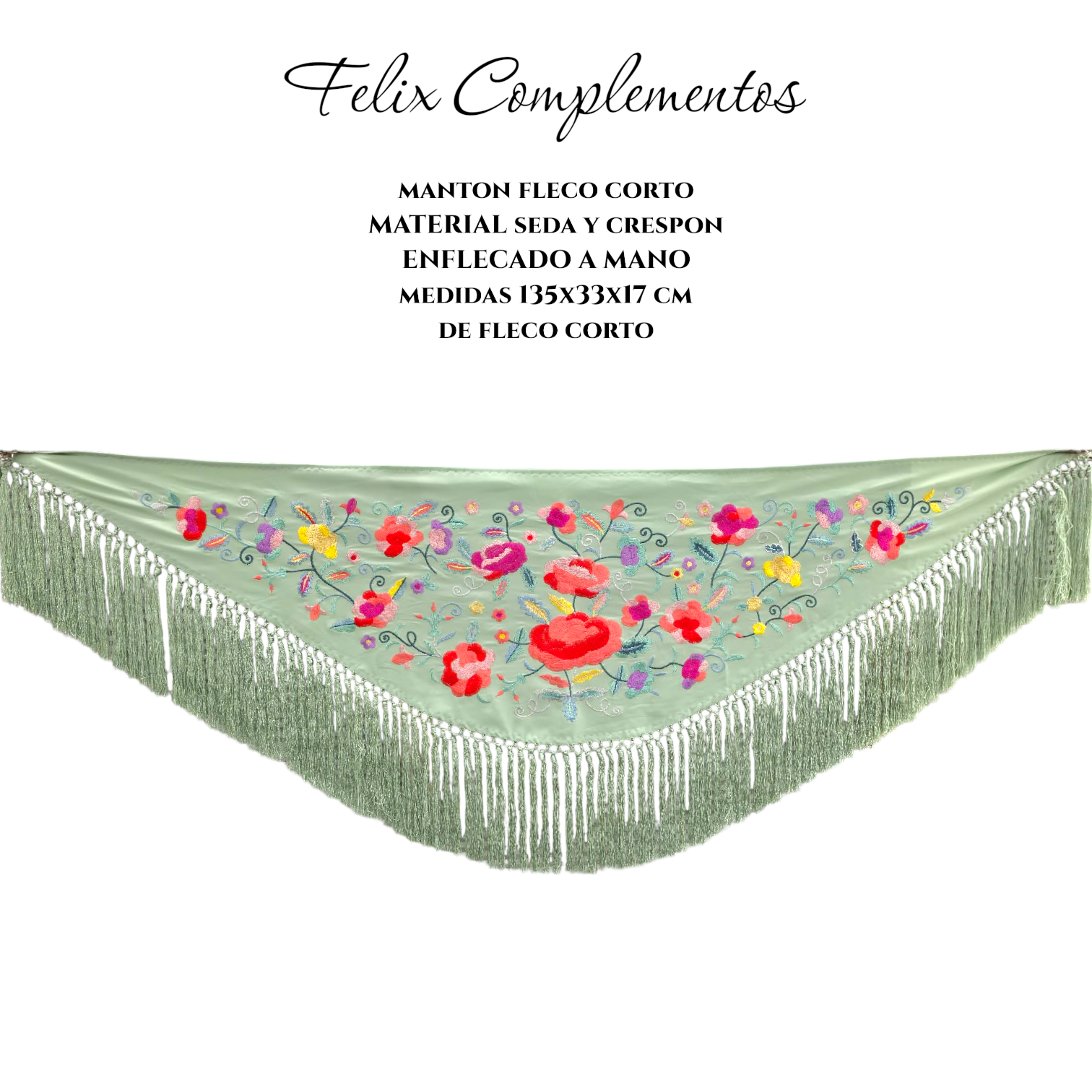 El Mantón de crespón y fleco de seda es una pieza elegante y tradicional mezclado con la modernidad de hoy en día, confeccionada con hilo de seda, lo que le otorga un brillo y una caída inigualables. El crespón añade textura y cuerpo al tejido, mientras que el enflecado a mano realza su valor artesanal, garantizando la calidad de los flecos y el anudado.