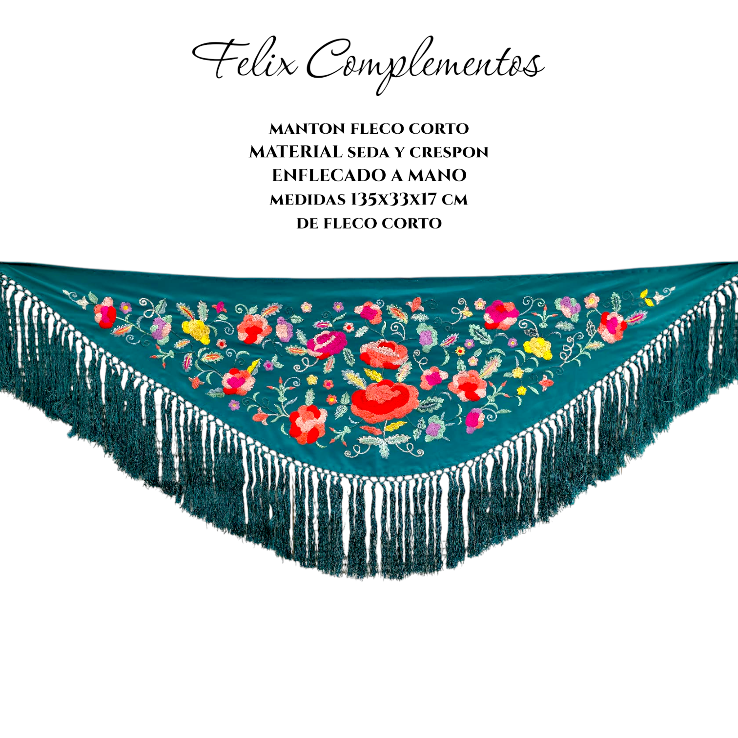 El Mantón de crespón y fleco de seda es una pieza elegante y tradicional mezclado con la modernidad de hoy en día, confeccionada con hilo de seda, lo que le otorga un brillo y una caída inigualables. El crespón añade textura y cuerpo al tejido, mientras que el enflecado a mano realza su valor artesanal, garantizando la calidad de los flecos y el anudado.