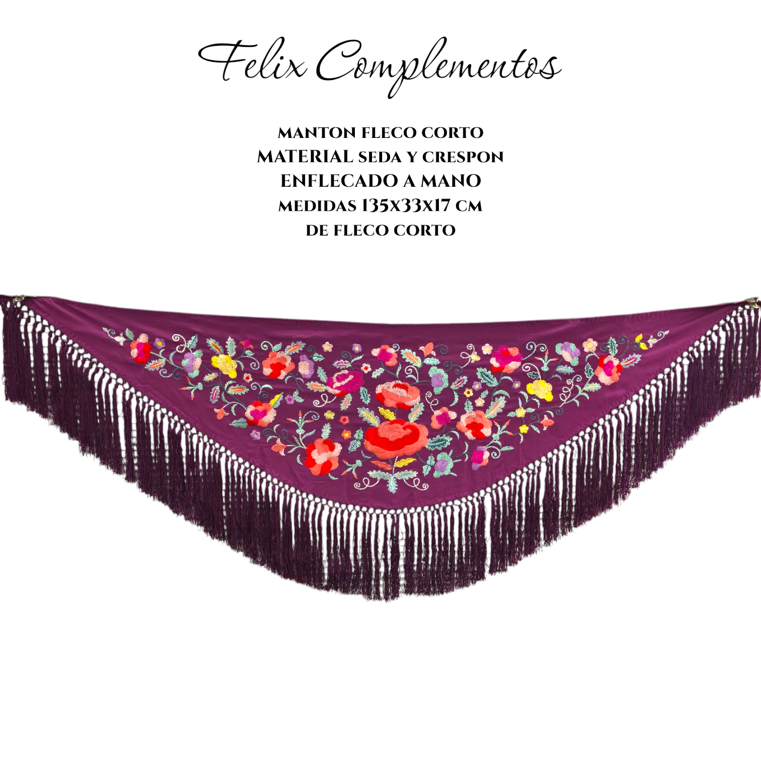 El Mantón de crespón y fleco de seda es una pieza elegante y tradicional mezclado con la modernidad de hoy en día, confeccionada con hilo de seda, lo que le otorga un brillo y una caída inigualables. El crespón añade textura y cuerpo al tejido, mientras que el enflecado a mano realza su valor artesanal, garantizando la calidad de los flecos y el anudado.
