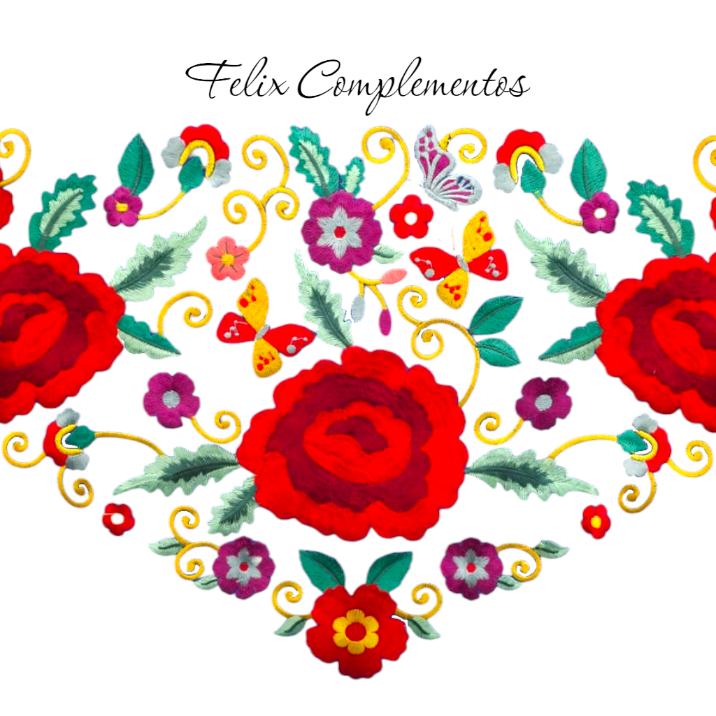 La fuerza del rojo y la alegría de la primavera en una sola pieza. Este mantón es una oda al arte flamenco. Su diseño central destaca por tres rosas rojas majestuosas, símbolos de pasión y elegancia, que se ven rodeadas por un bordado tupido y vibrante lleno de matices cromáticos. Es la pieza ideal para quien busca un mantón con mucha personalidad y que combine con casi cualquier color de traje.