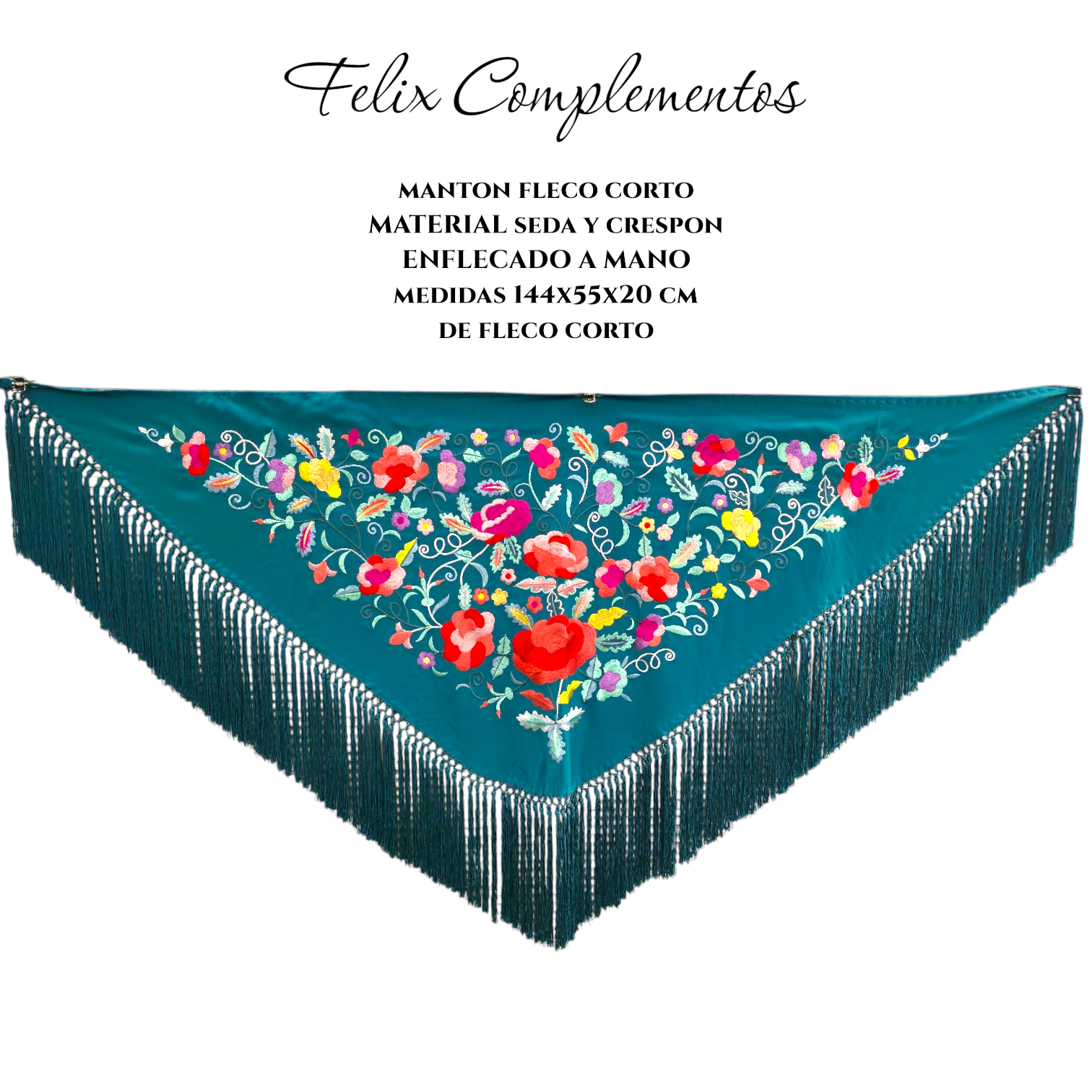 El Mantón de crespón y fleco de seda es una pieza elegante y tradicional mezclado con la modernidad de hoy en día, confeccionada con hilo de seda, lo que le otorga un brillo y una caída inigualables. El crespón añade textura y cuerpo al tejido, mientras que el enflecado a mano realza su valor artesanal, garantizando la calidad de los flecos y el anudado.